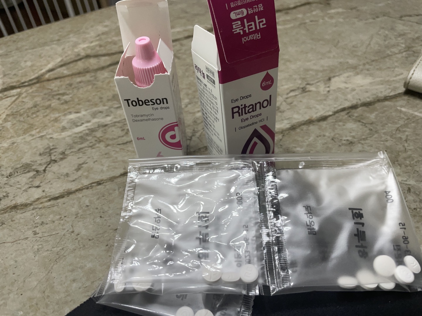 먹는 약, 안약 처방. 한 5일정도 먹으면 괜찮아질 거라고 하시긴 했어요.