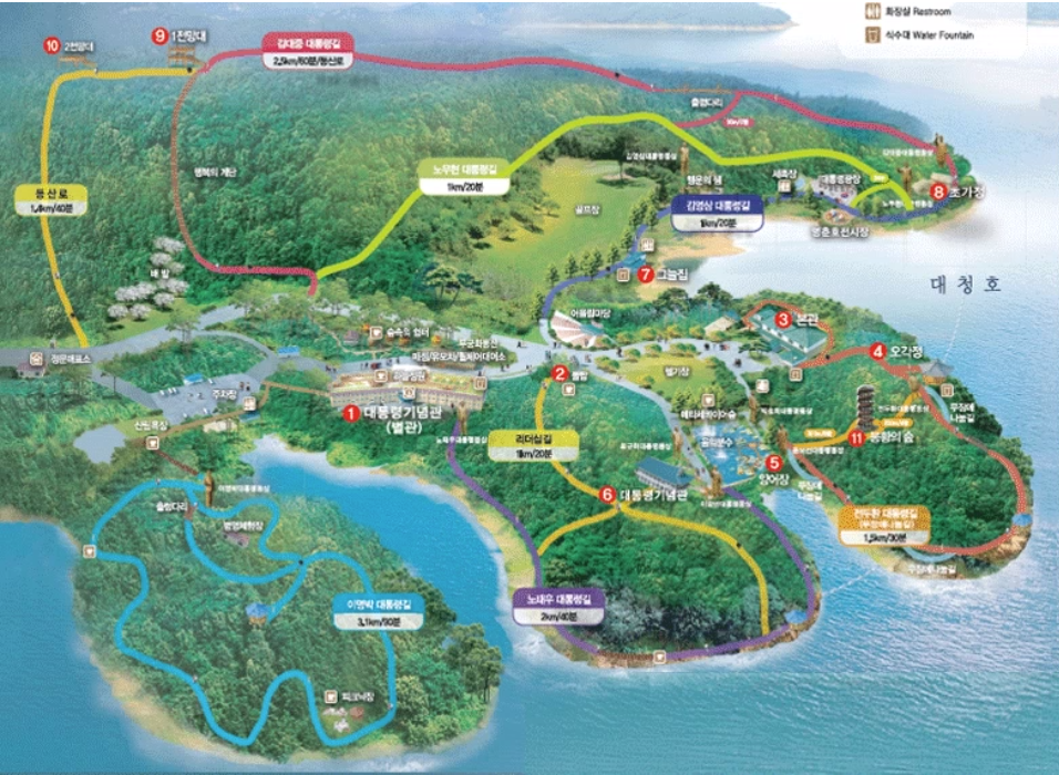 청남대는 대청호반에 자리 잡고 있으며, '남쪽에 있는 청와대'라는 뜻의 이름입니다.