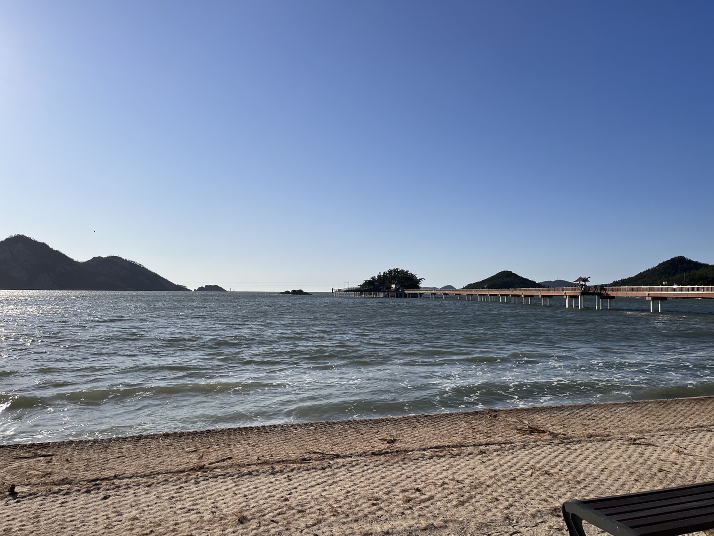 밀리는 차 안에서 힘들긴 했지만 차창 밖으로 보이는 바다 풍경이 너무 아름답더라고요.