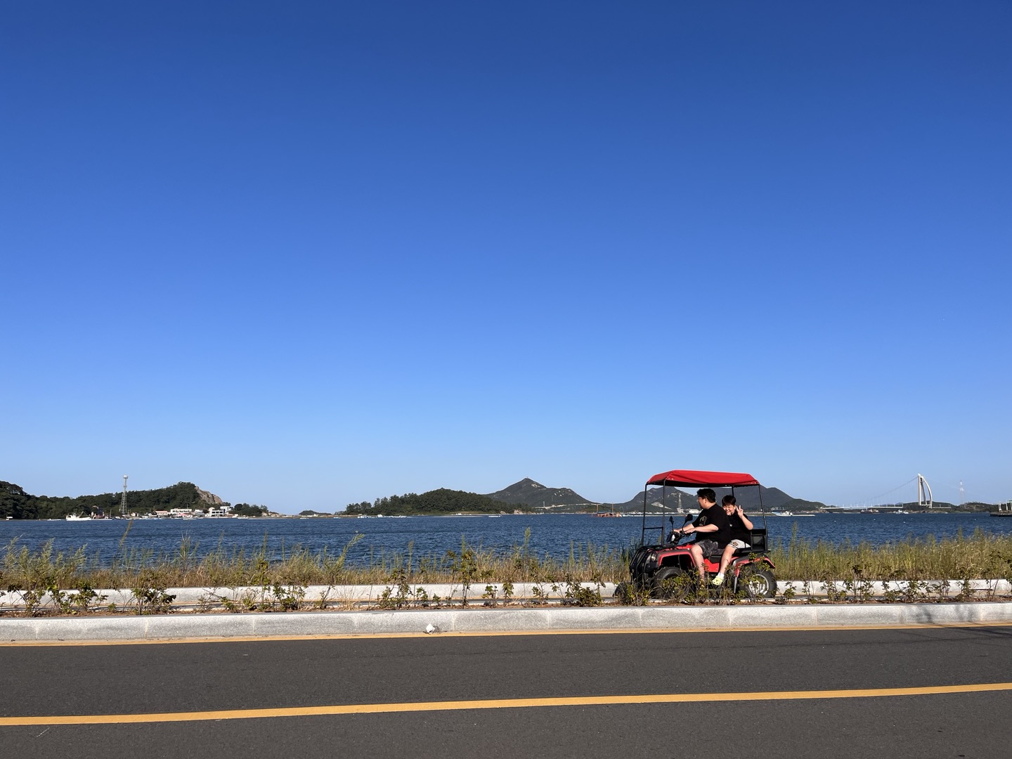 선유도에서는 아들과 아빠 단 둘이 바이크체험을 했어요.