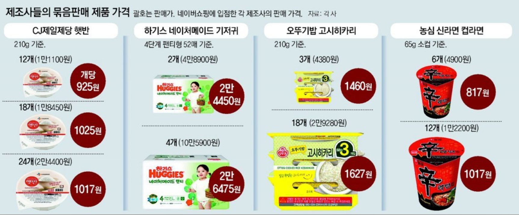 라면을 구입하거나 햇반을 구입할 때 보통은 묶음 상품으로 구입하게 됩니다.