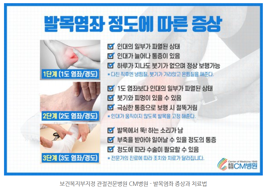 발목염좌도 정도에 따라 꼭 치료가 필요할 수 있으니 다친 직후