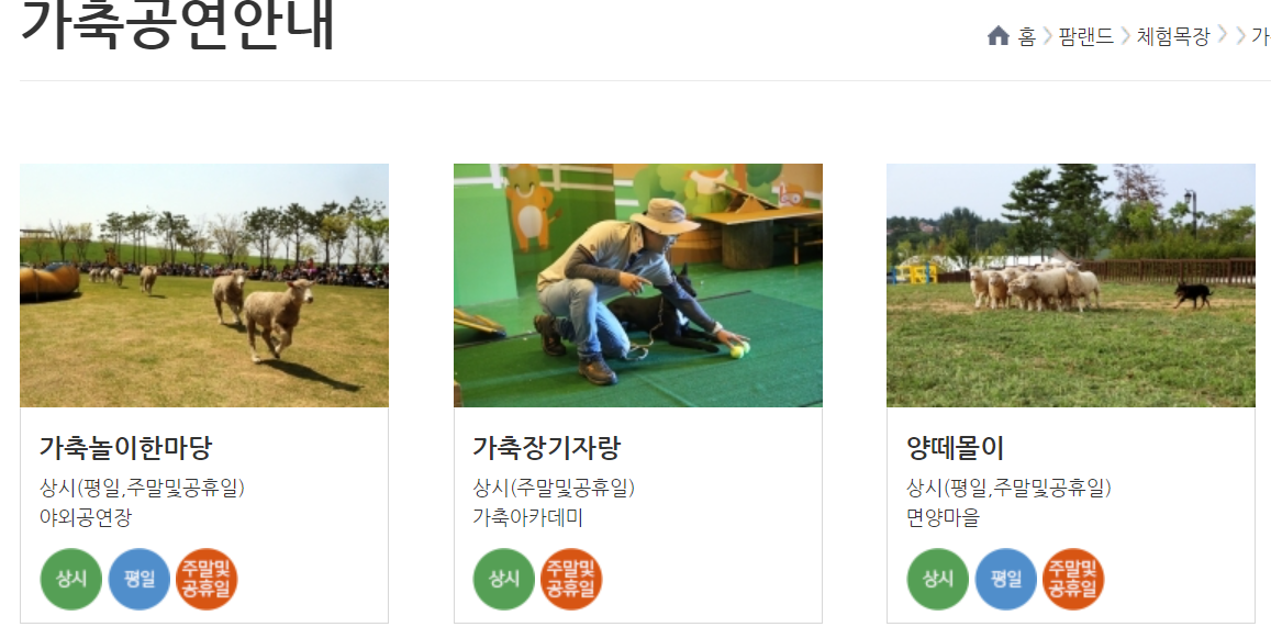 동물들 먹이 주기 체험, 솔로 빗어주기, 동물 공연은 물론이고