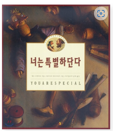 [너는 특별하단다] 도서는 자신이 특별한 사람이 되고 싶은 마음을 가진 목각인형에게서 시작되는 이야기이다. 주인공 펀치넬로는 주변 목각인형들에게 못났다는 기준의 잿빛 점표를 받는다. 특별한 재능을 가진 목각인형들에게 반짝이는 금빛 별표를 주는 것에 비해 주인공은 반복적으로 잿빛 점표를 받게 되고 차침 밖에 나가는 일이 두려워진다. 남들처럼 높이 뛰어보려다 넘어져 점표를 받고, 넘어지면서 난 상처에 더 많은 점표를 받고 넘어진 이유를 설명하다 말투가 우스워 또 점표를 받고 온몸 가득 붙은 점표는 그 색깔만큼이나 펀치넬로를 우울하게 만든다. 어울리는 친구들 모두 잿빛 점표를 붙인 같은 사람들 뿐. 그러던 어느 날 펀치넬로는 루시아를 만난다. 루시아는 점표나 별표가 하나도 없다. 게다가 다른 사람들이 별표나 점표를 붙여도 이내 떨어지고 만다. 그런 모습을 신기해하던 펀치넬로에게 루시아는 목수 아저씨를 만나게 해 주고, 목각인형을 모두 만든 목수 아저씨는 펀치넬로에게 남들의 시선이 아니라 자신에 대한 생각이 중요함을 알려준다. 그리고 목수아저씨는 모두를 같은 마음으로 사랑을 담아 만들었음을 알려준다. 그제야 펀치넬로는 점표나 별표를 다른 이가 아닌 내가 붙어 있게 한다는 것을 알게 되고 목수아저씨를 매일 만나러 오기로 한다. 돌아가는 길 집 밖으로 나온 펀치넬로의 몸에서 잿빛 점표가 하나, 둘씩 떨어져 나간다.