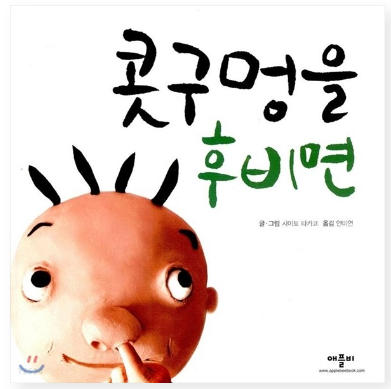 아이의 나쁜 습관을 고치는 데에는 많은 방법이 쓰인다. 대부분 엄마들은 그런 나쁜 습관에 민감하게 반응하고 고쳐주기 위한 많은 정보들을 인터넷에서 찾고 한다. 다행스럽게 우리 아이는 그렇게 오랜시간 습관으로 인한 어려움이 있지는 않았다. 다만, 어린이집 근무 시 손가락을 빠는 행동으로 인한 고민이 많은 부모들의 이야기가 많았고, 우리 반 아이에게 손가락빠는 습관을 없애주기 위하여 많은 정보를 하나씩 접목해 보긴 하였다. 손가락에 반창고 붙이기나 빨간약 바르기나 손가락을 빨면 병균이 입 속으로 들어갈 수 있어 아플 수 있음을 지속적으로 이야기해 주기, 관련 동화책 읽어주기 등등... 하지만 대부분의 아이들은 각자에게 맞는 방법이 있었고, 손가락을 빨 때 그 모습을 거울로 보여주거나, 사진기로 찍어 보여주기 등등의 충격요법이 효과가 있기는 하였다. 그중 나쁜 습관에 대한 그림책으로는 [콧구멍을 후비면] 책을 많이 보여 주긴 하였다. 다만 부작용으로 겁에 질려 책을 꺼내기만 해도 울거나 도망가는 아이들이 발생하기도 하였으나, 충격요법으로는 이만한 책은 없었던 것 같다. 평소 내 아이가 손가락을 빨거나, 콧구멍을 후비거나, 배꼽을 파거나, 장난감을 발로 차거나, 성기를 만지거나 귀를 잡아당기는 등의 행동을 습관처럼 한다면 그리고 아이가 생각보다 충격적인 그림에 겁을 내지 않는다면 이 책을 보여주기 제안한다.